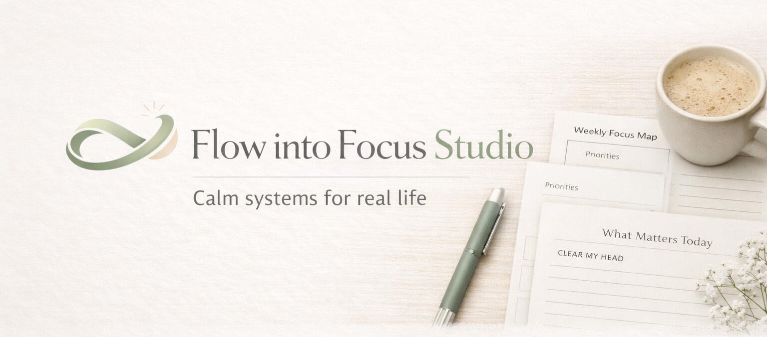 Flow into Focus Studio was created from lived experience — balancing work, family, creativity and the constant